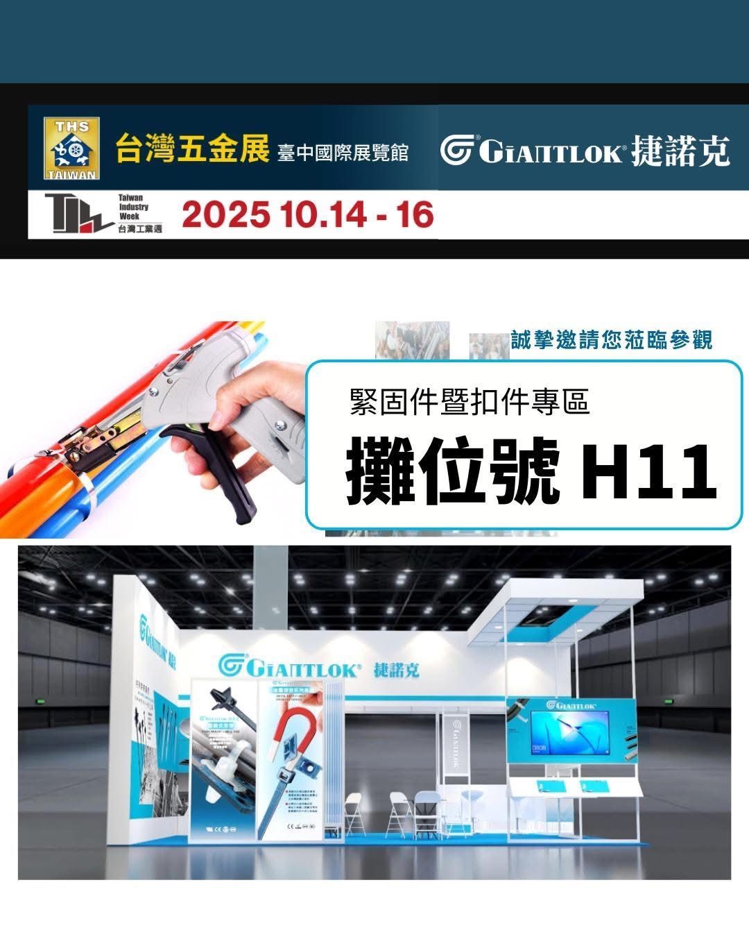 隨著 2025 年第 4 季的到來,謙斌實業有限公司(HVI) 非常高興邀請大家於下週蒞臨 台灣五金展(台中),參觀 Giantlok(特殊束帶) 的展位!✨