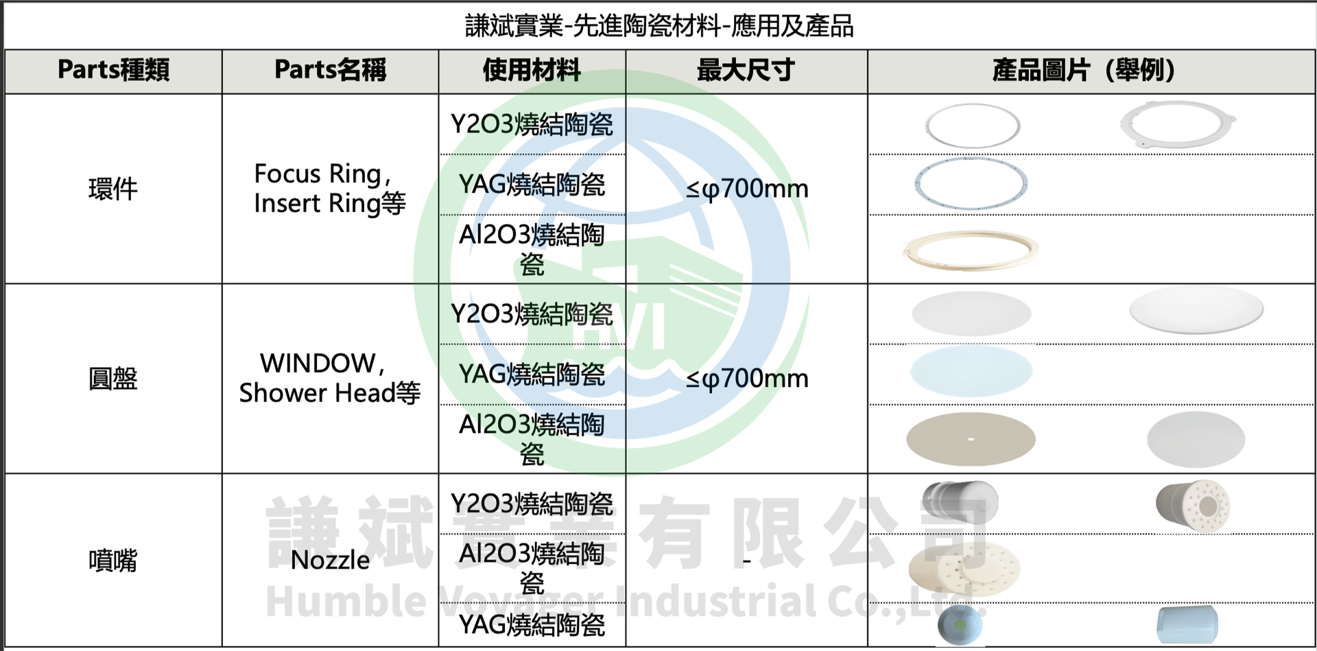 可對應各種形狀與尺寸的 Y₂O₃(氧化釔)、AlN(氮化鋁) 新產品製作與加工;