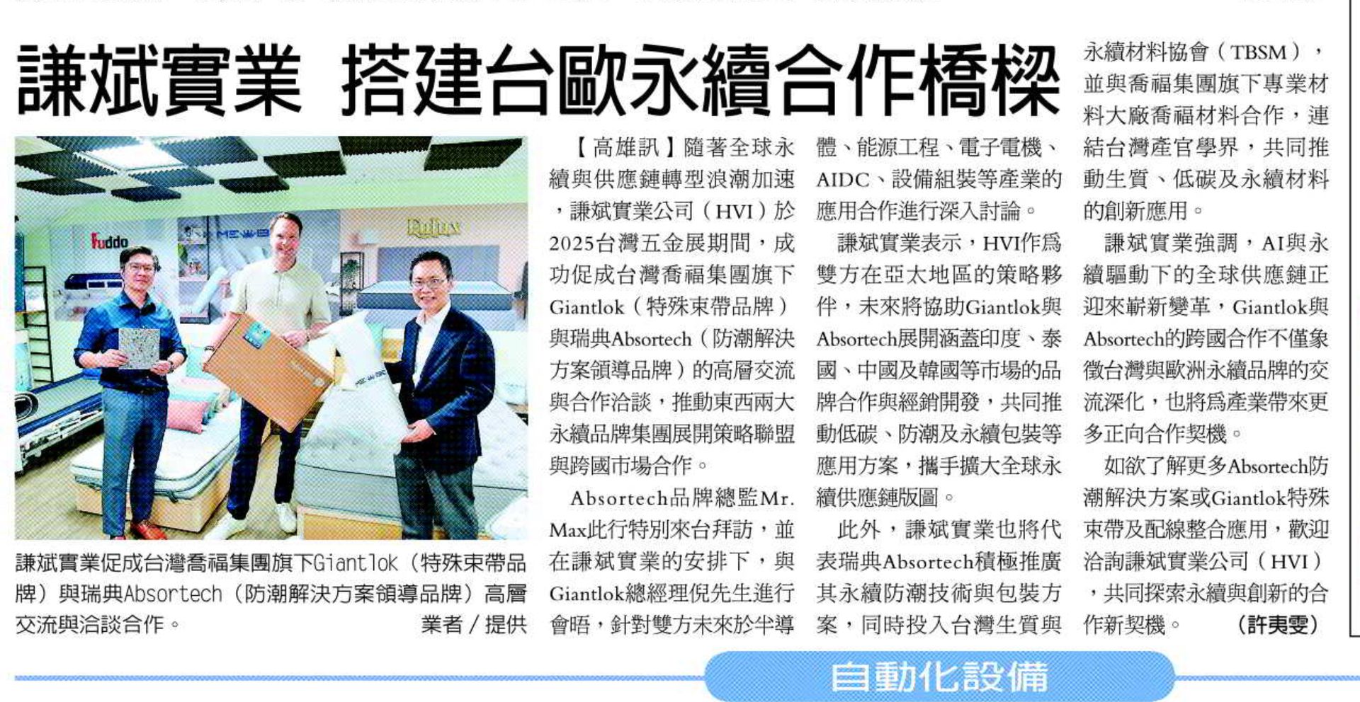 📌 如果您對瑞典 Absortech 防潮解決方案或台灣 Giantlok 特殊束帶及配線整合方案有進階合作意願,歡迎聯絡 HVI!