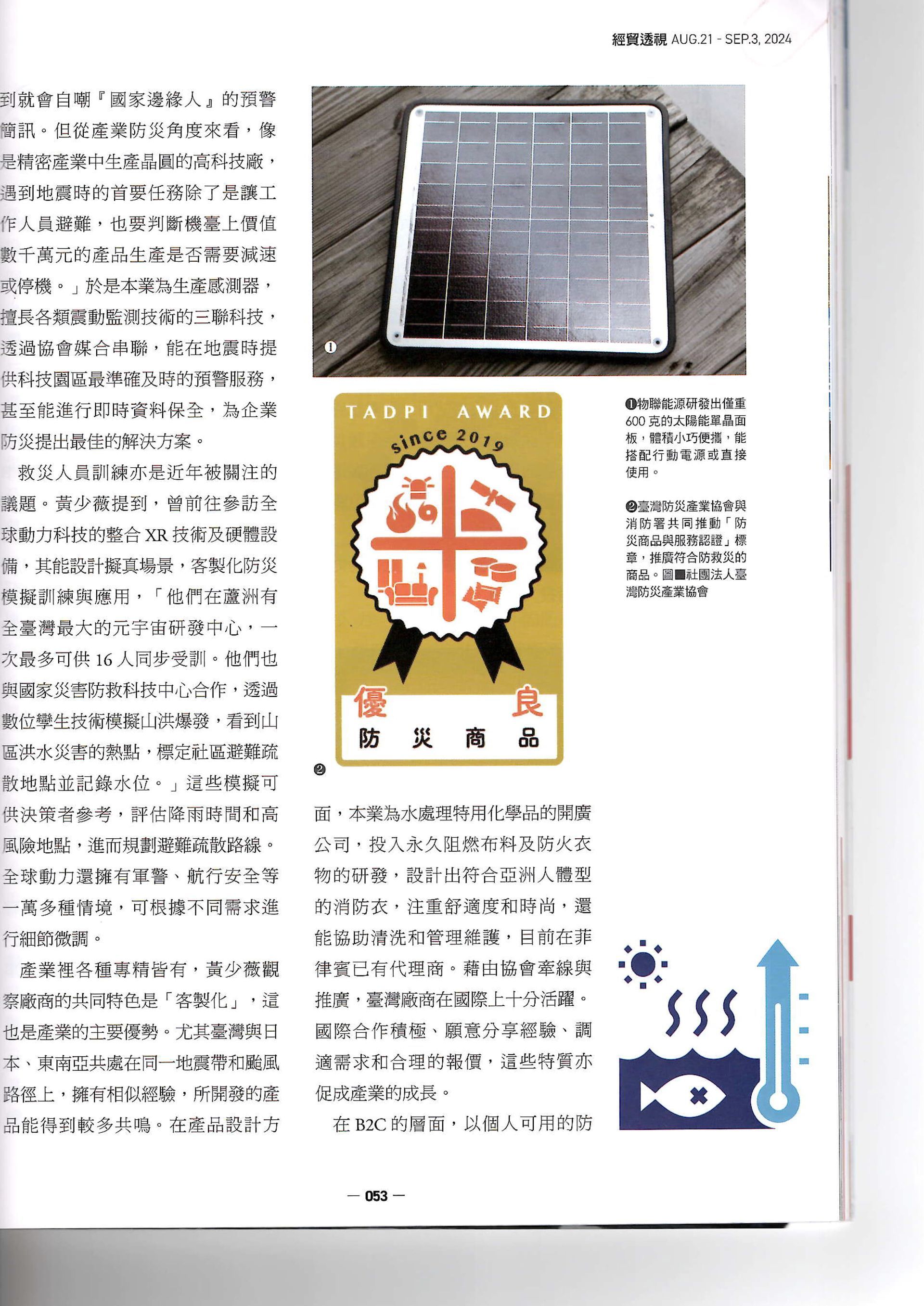 內政部消防署於 24 日舉辦「2025 國家防災日頒獎典禮」,福朵多功能逃生床墊於活動現場進行展示,吸引防災、醫療及公共安全相關單位關注。內政部次長馬士元及消防署署長蕭煥章親臨展區參觀指導,經過永續防災建築委員會 謙斌黃總監介紹,了解產品設計理念與實際應用方式,對其在災害應變上的創新構想給予高度肯定。